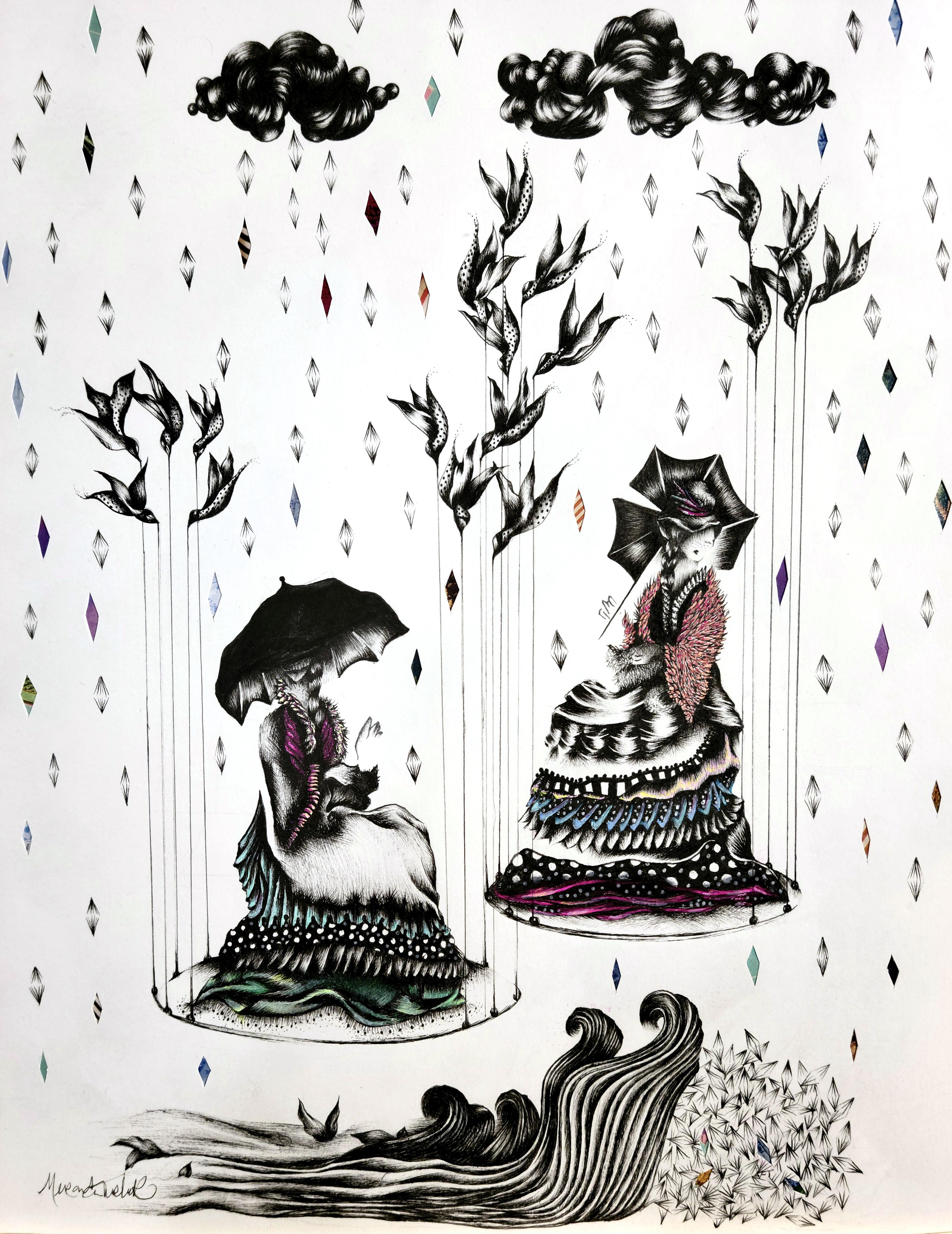 pen and collage on paper